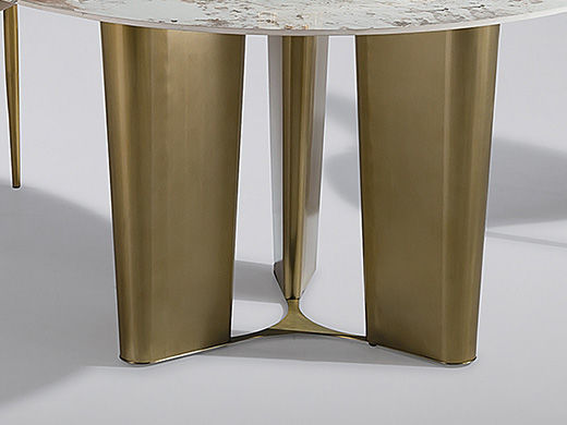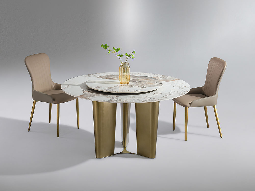 甄品家具 轻奢 桌面:岩板+底板脚架:不锈钢香槟金【配转盘】 1.5米餐桌