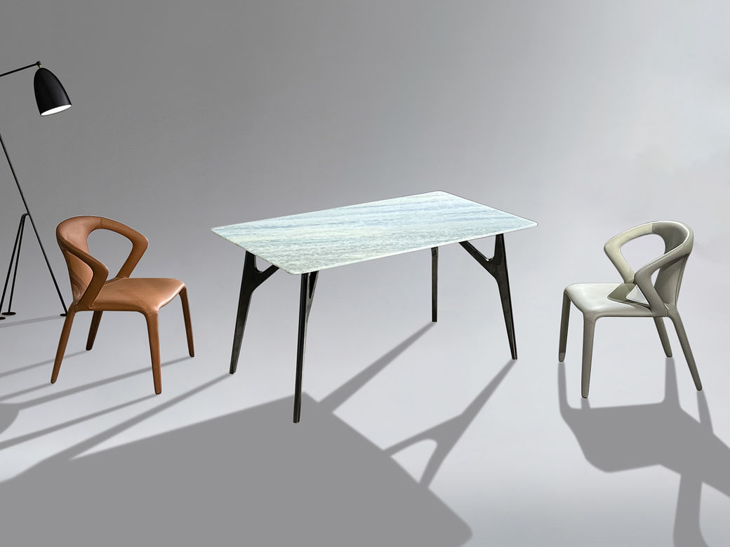 小红书系列 极简 桌面:天然石+绒布底板脚架:不锈钢本色亮光+黑胡桃 1.6米餐桌¥33801