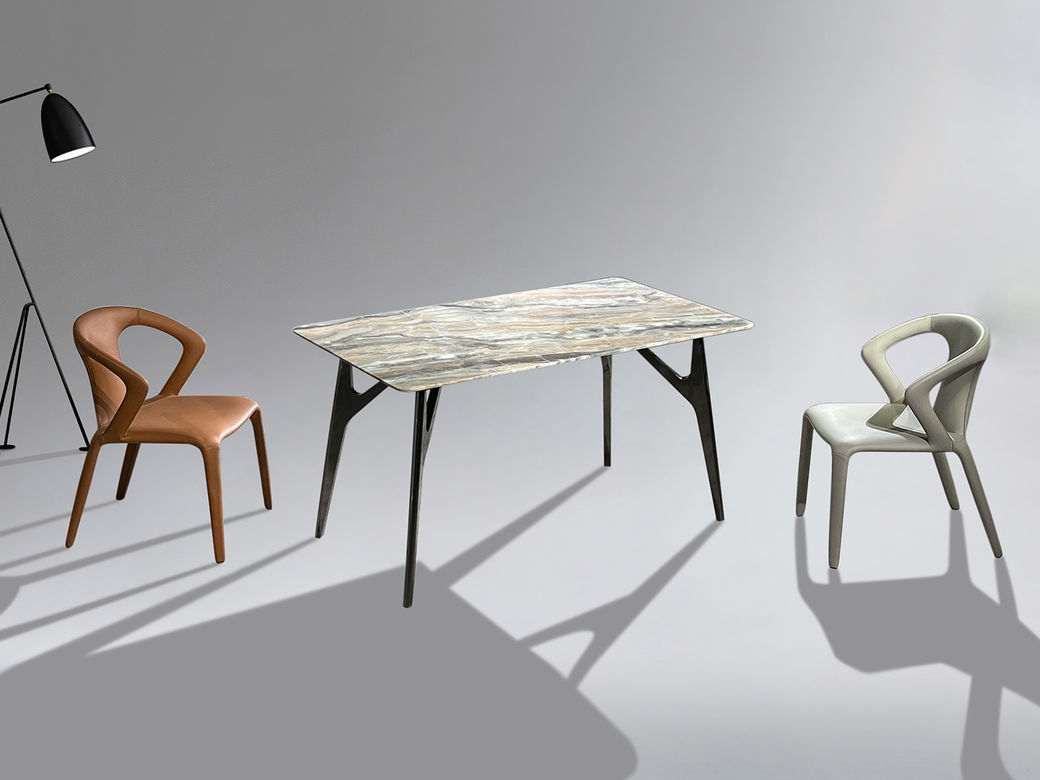 甄品家具 轻奢 桌面:天然石18mm+常规底板脚架:不锈钢灰钛拉丝 1.4米餐桌¥4919
