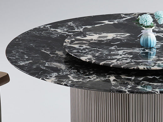 小红书系列 轻奢 桌面:天然石+绒布底板脚架:不锈钢本色【配转盘】 1.35米餐桌¥4010