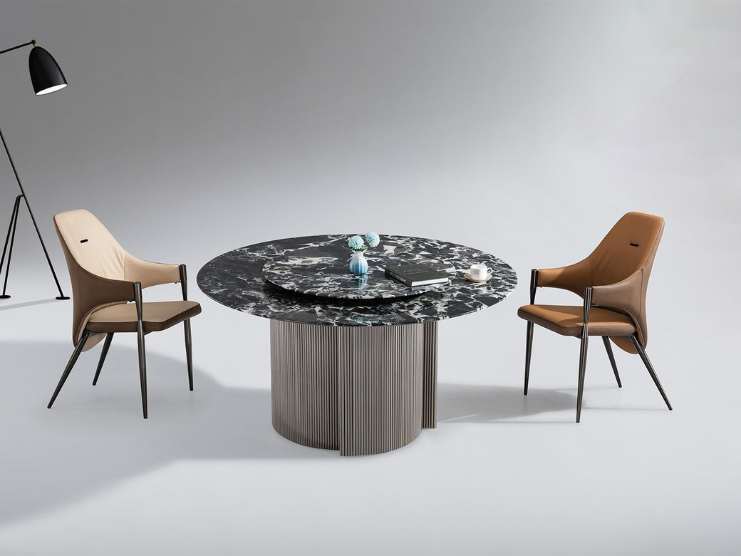 小红书系列 轻奢 桌面:天然石+绒布底板脚架:不锈钢本色 【配转盘】1.35米餐桌¥28551