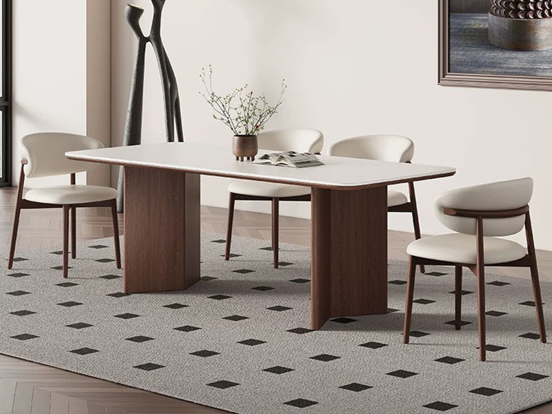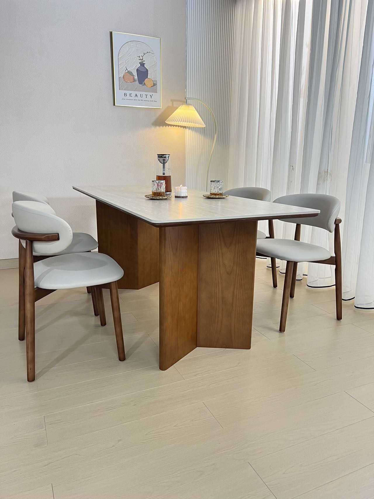 中古·尚 中古风 岩板+多层实木板+仿真木皮+底板 1.4米餐桌 |