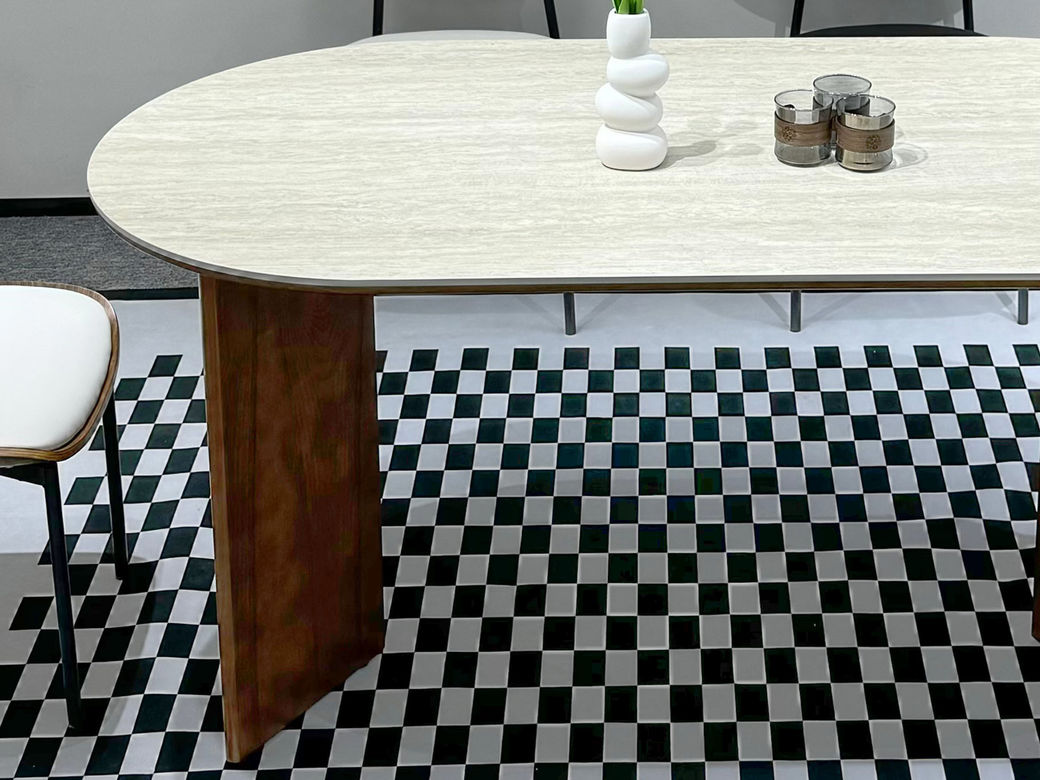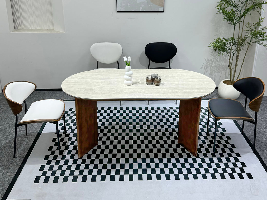 【套餐专享价】每屋优享系列 现代简约 橡胶木+胡桃色木架+全托底板+米白洞石岩板 方形 1.8米 餐桌¥1888
