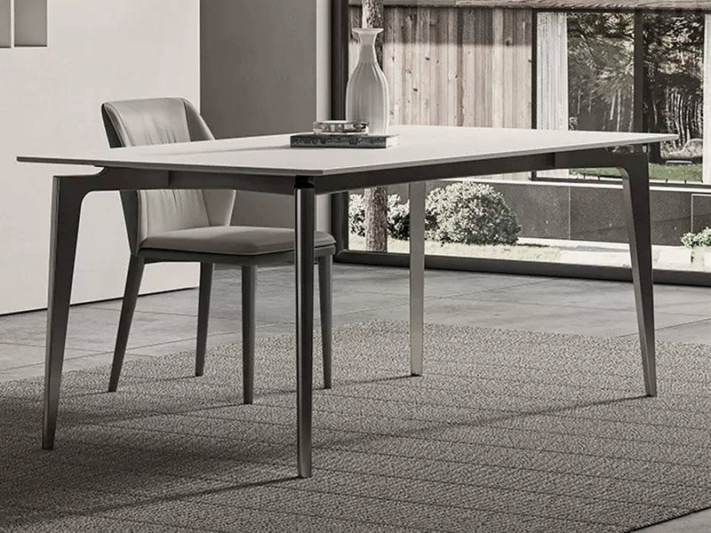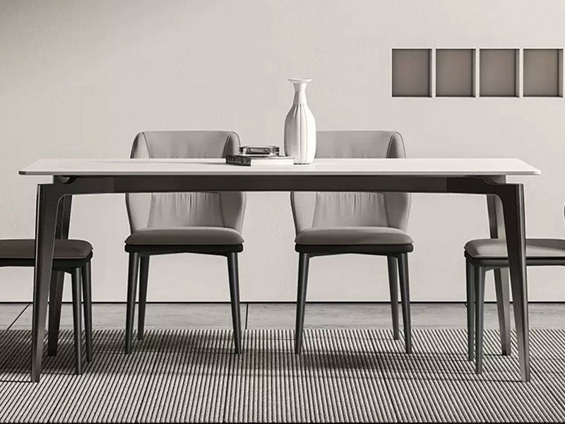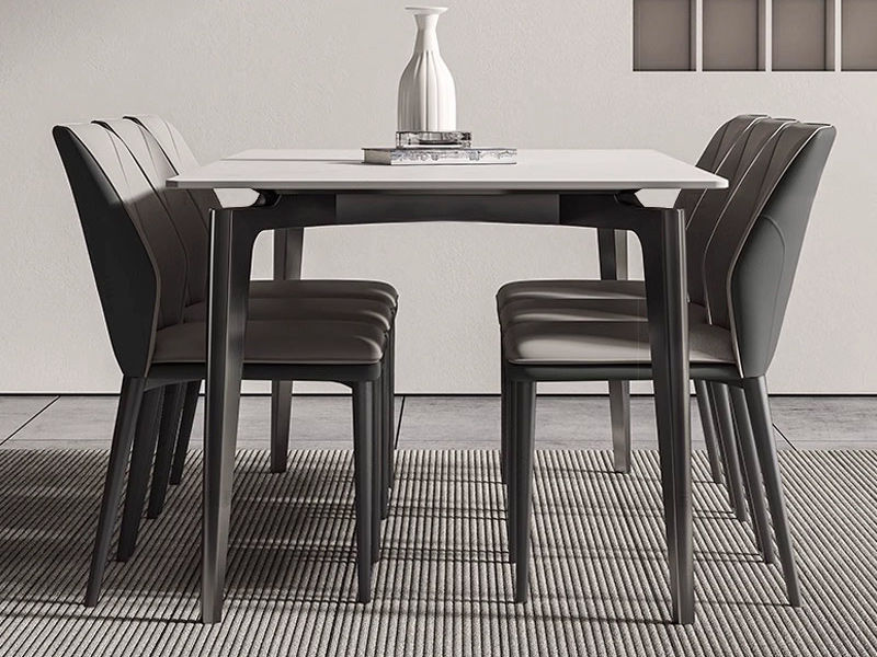 【套餐专享价】每屋优享系列 现代简约 碳素钢枪灰底架+岩板 方形 1.4米 餐桌
