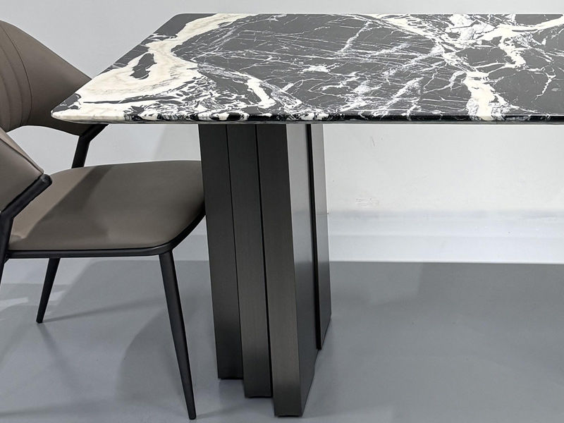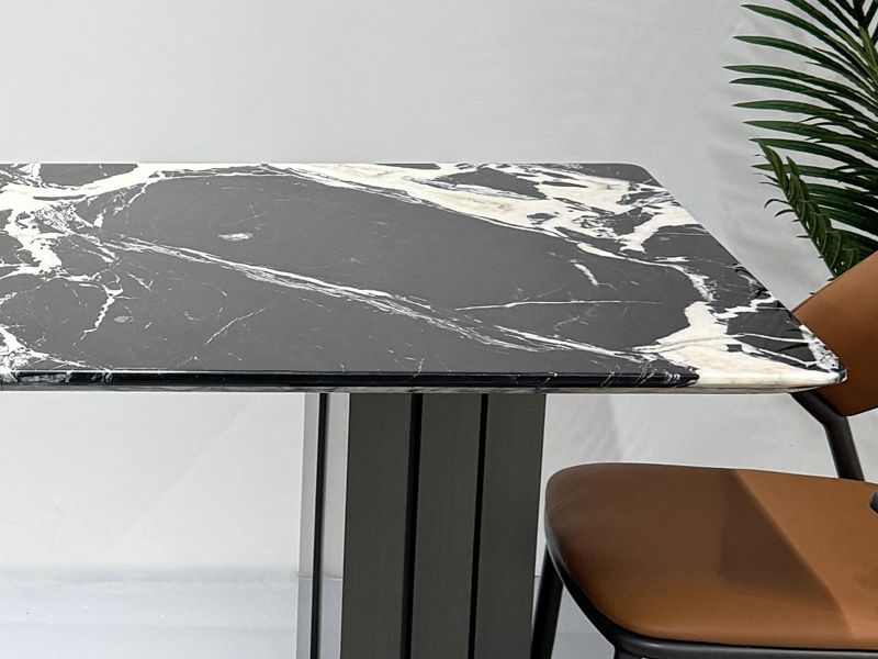 洛萨 现代 不锈钢脚架+加厚边+宝格丽黑奢石 1.4米餐桌