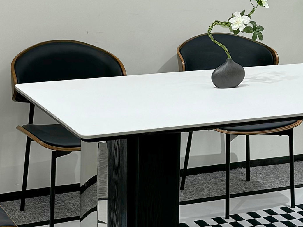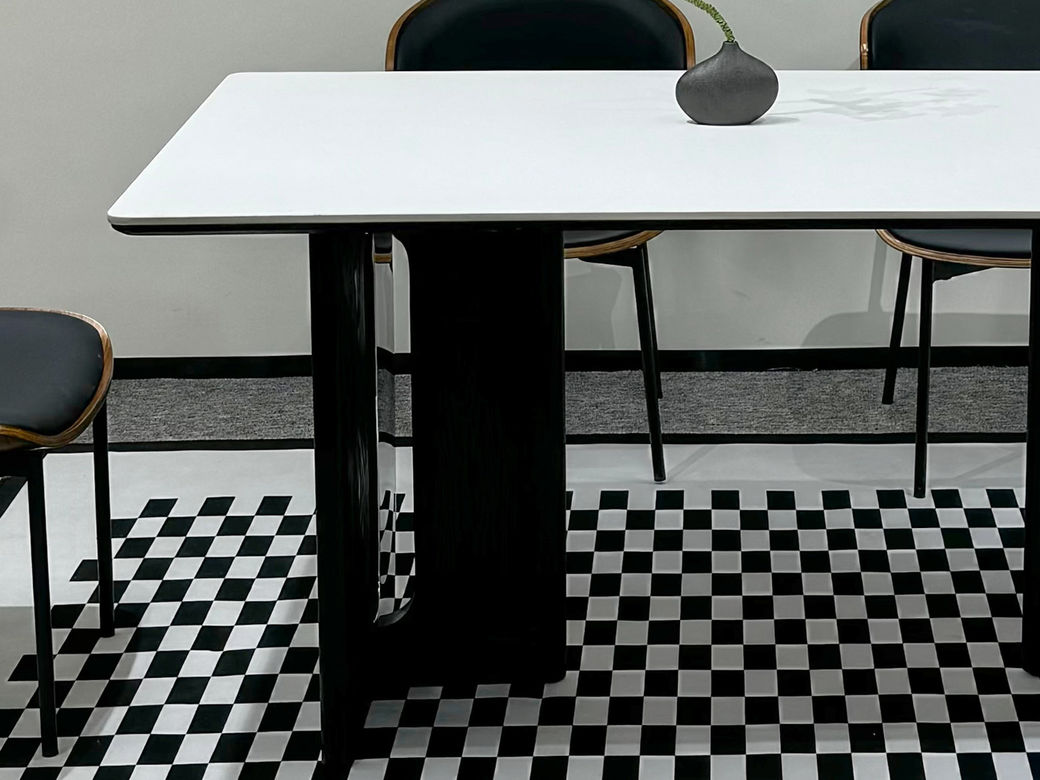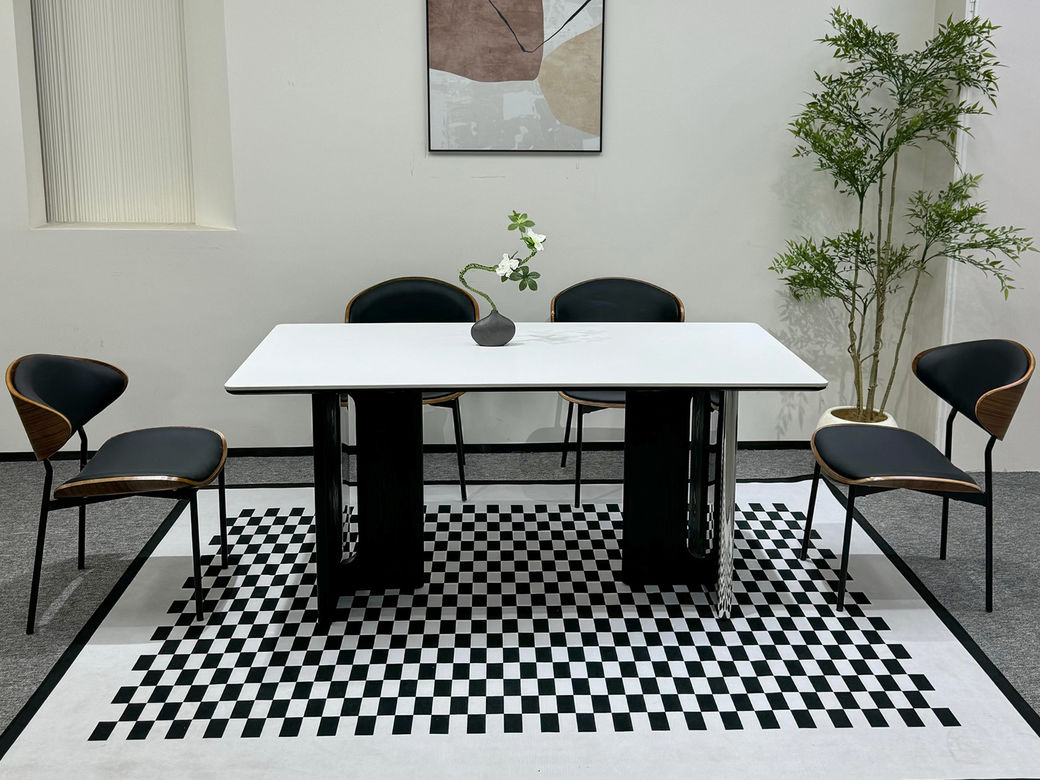【贵州黔东南】【套餐专享价】每屋优享系列 现代简约 不锈钢脚架+全拖底板固定+岩板桌面 方形 1.8米 餐桌