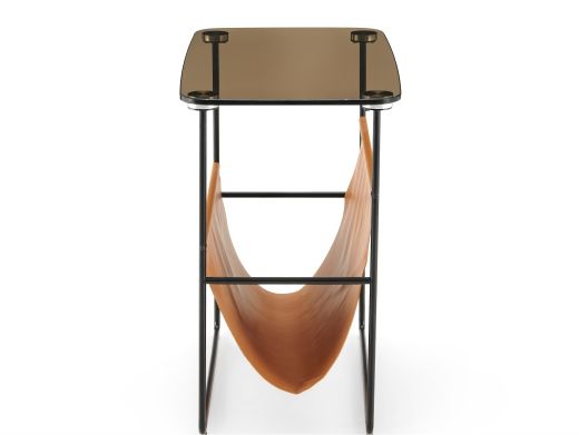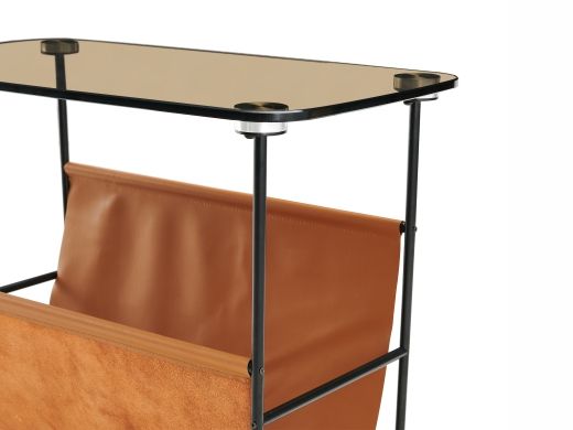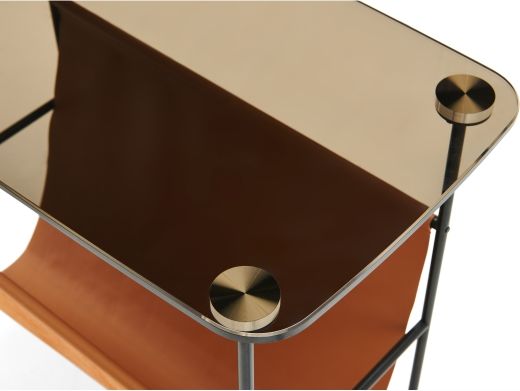 Milos米洛斯 极简 钢化玻璃 超纤皮 碳素钢金属烤漆框架 0.66米边几