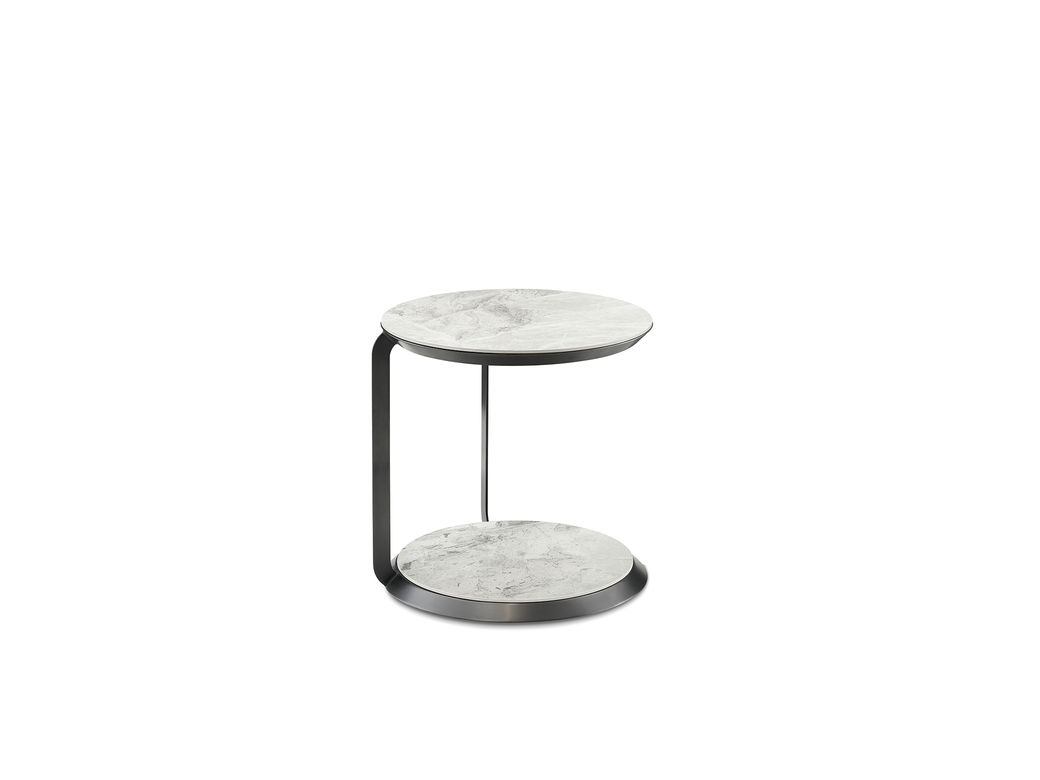 Milos米洛斯 极简 陶瓷岩板 不锈钢黑拉丝框架 0.47米边几