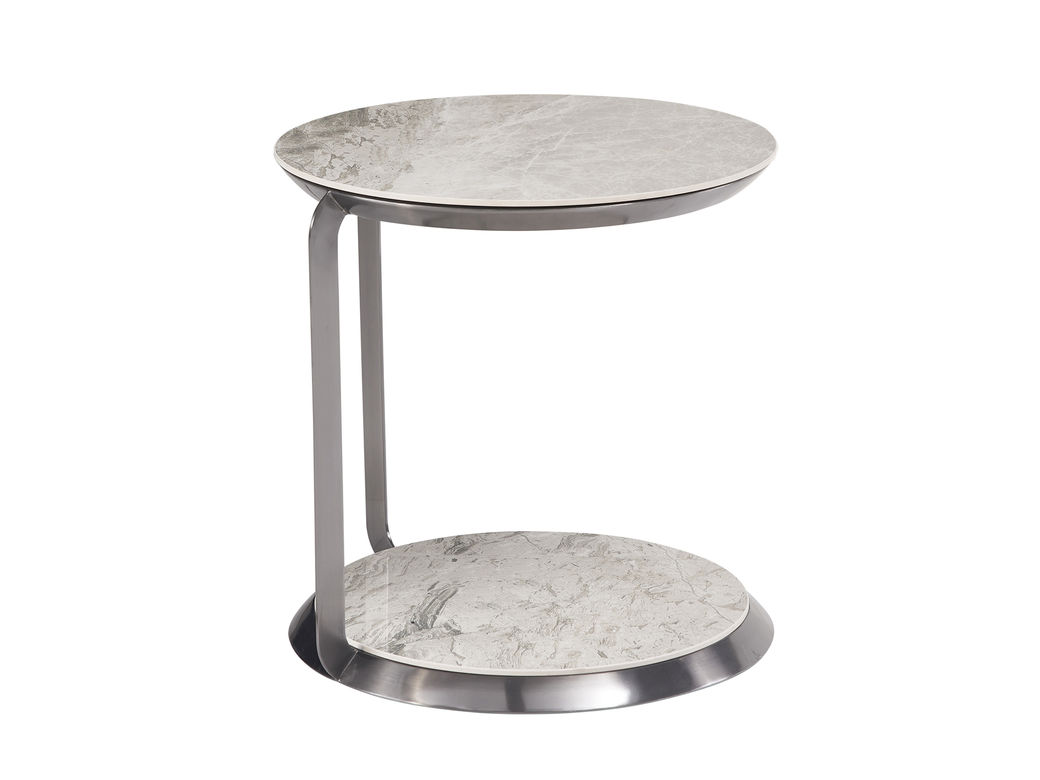 洛萨 极简 E1级中纤板贴尤加利木皮+不锈钢+天然石(爱马仕灰) 0.5米边几¥2351