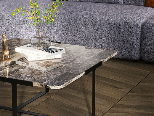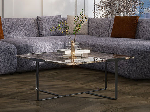 缔造 极简 意大利威尼斯棕天然大理石+不锈钢电镀灰钛 0.91米大方几茶几