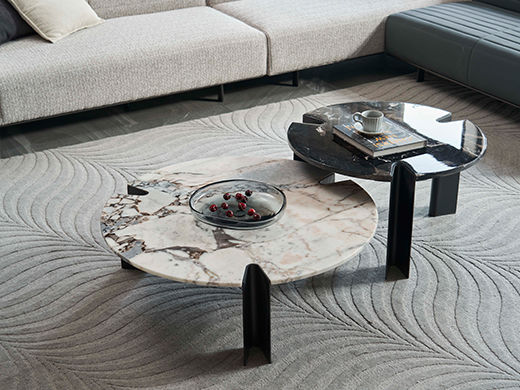 缔造 极简 大象白天然石面+ 碳素钢喷哑黑色脚 1米茶几