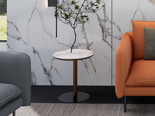 缔造 现代简约 6MM潘多拉岩板+E1级面板+碳素钢立柱 0.45米边几