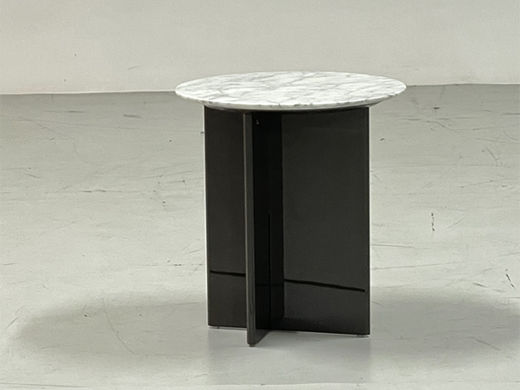 鹿屿 轻奢 天然石中花白+金属 0.4米圆形边几