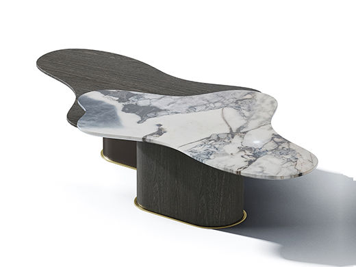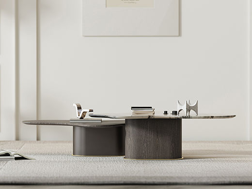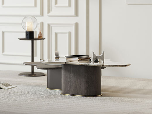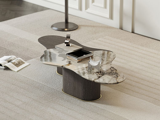 鹿屿 奶油风 天然石大象白+烤漆+鸡翅木皮 1.4米组合茶几