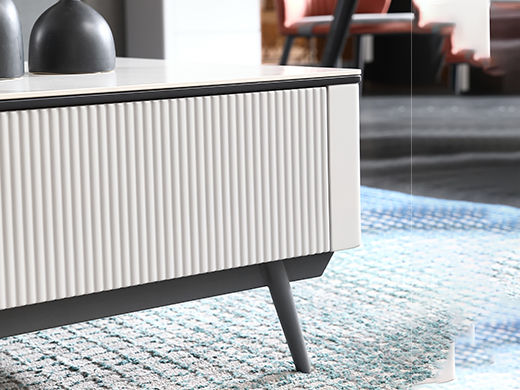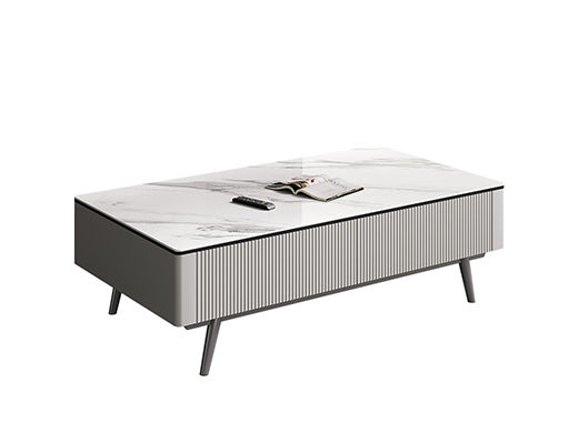 梵歌 现代简约 E1环保中纤板+三节滑珠导轨 6MM岩板石面 爵士白 碳素钢五金架 钢化玻璃 浅灰白 1.3米茶几 |