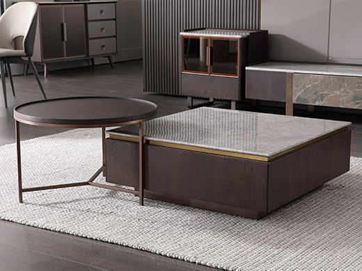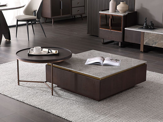 梵歌 现代简约 E1环保中纤板 环保水性漆 烟熏木皮 高密度三胺板 石面 碳素钢五金脚 烟熏色 0.9米方几茶几
