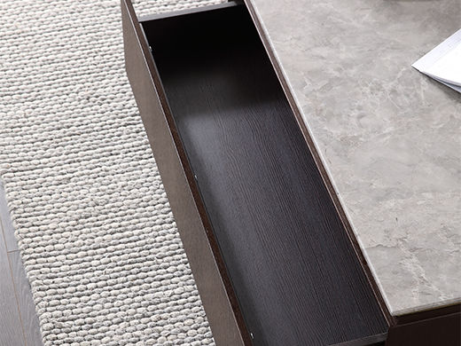 梵歌 现代简约 E1环保中纤板 三节滑珠导轨 细纹橡木皮 高密度三胺板抽屉+三节缓冲导轨 人造大理石 碳素钢五金脚 浅卡其 1.3米茶几