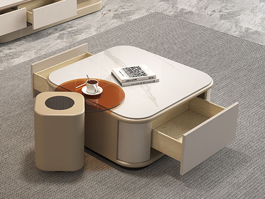 非凡工艺 现代简约 6厘岩板 板木结合 喷涂烤漆 0.9米组合茶几 |