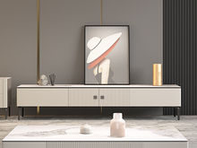 非凡工艺 现代简约 中纤板 亮光烤漆+碳素钢脚架+岩板6mm+8mm茶色钢化玻 卡塔金+奶油色烤漆 组合圆茶几+2米电视柜