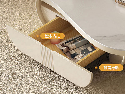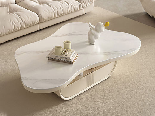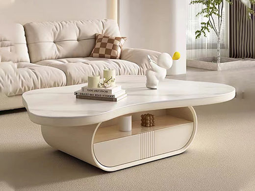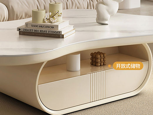 云端 奶油风 实木多层板弯板+E1板材,亮光雪山石岩板 奶白色 1.3米茶几 |