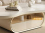 云端 奶油风 实木多层板弯板+E1板材,亮光雪山石岩板 奶白色 1.3米茶几