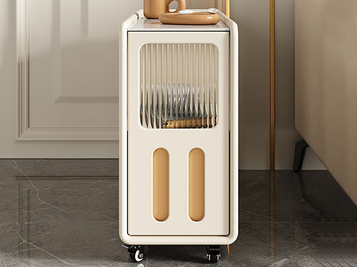 云端 奶油风 实木多层板材质+奶白色烤漆+长虹玻璃+万向轮 卡其色 0.8米沙发边几