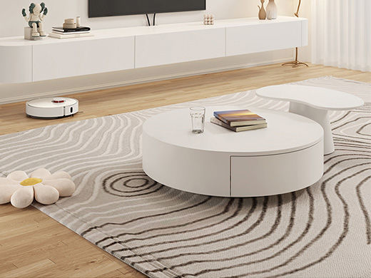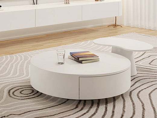 云端 奶油风 E1板材烤漆 奶白色 1.3米茶几¥1631