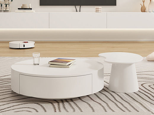 云端 奶油风 实木多层板材质+奶白色哑光烤漆 白色 0.9米组合茶几¥1843
