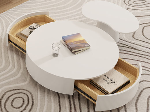 B系优选 奶油风 板材+纯白岩板 1.3米茶几