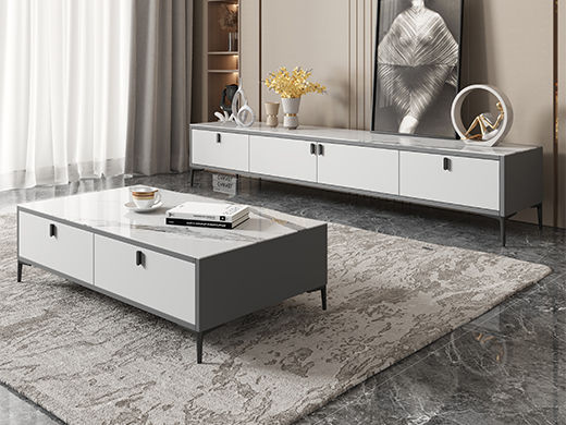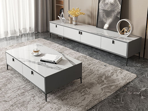 A系优选 现代简约 亮光岩板+免漆板+高碳素钢脚 图片色 1.3米茶几+2米电视柜(未开电源孔)