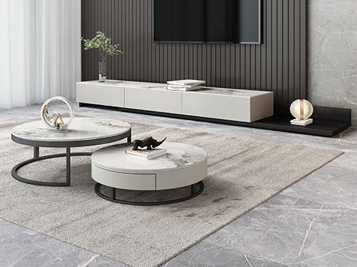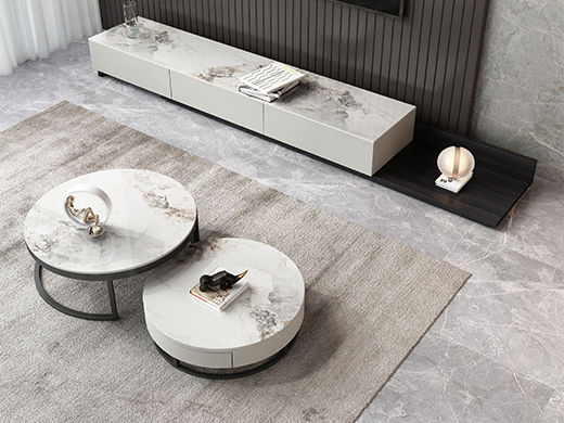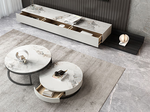 A系优选 现代简约 中纤板(MDF)亮光烤漆+岩板 组合茶几+1.8米伸缩电视柜(未开电源孔) |