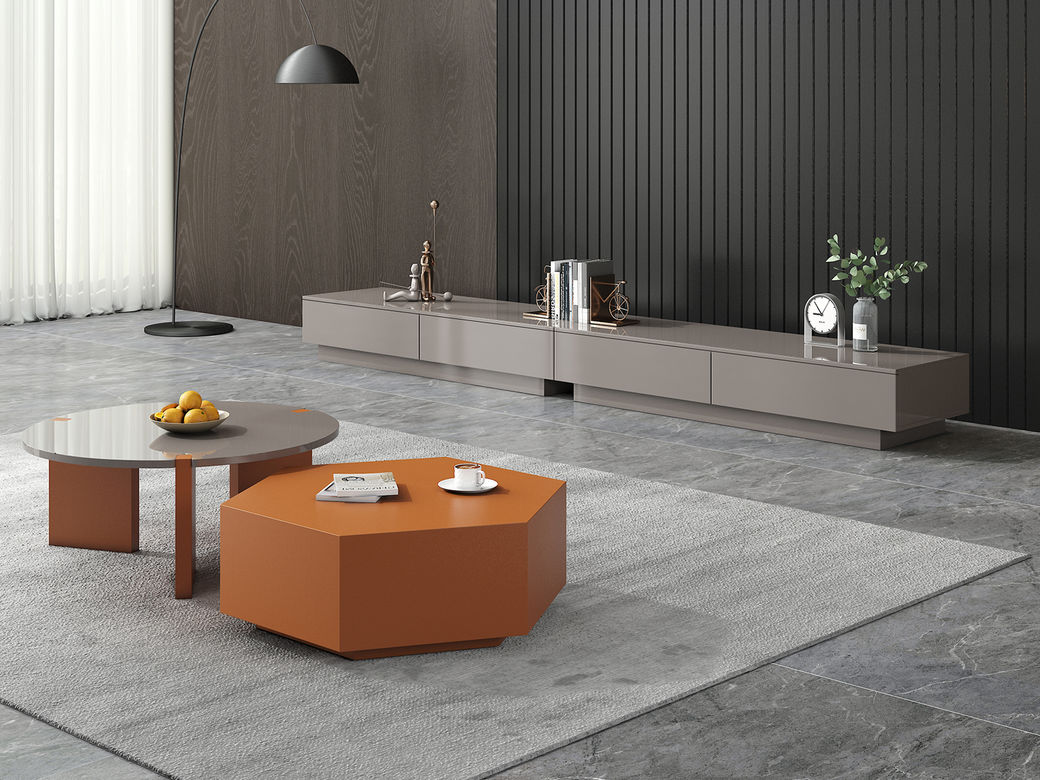 A系优选 现代简约 中纤板(MDF)亮光烤漆+中纤板亮光烤漆 组合茶几+2.4米电视柜(未开电源孔)
