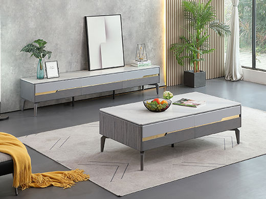 B系优选 现代简约 E1中纤板+多层实木板+天然木皮+静音缓冲导轨+碳素钢五金+岩板+环保油漆 图片色 1.3米茶几+2米电视柜(未开电源孔)