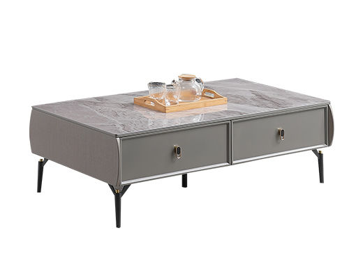 B系优选 现代简约 E1板材高级亮光灰烤漆,实木抽屉+亮光雪山石岩板面+五金脚 1.3米茶几