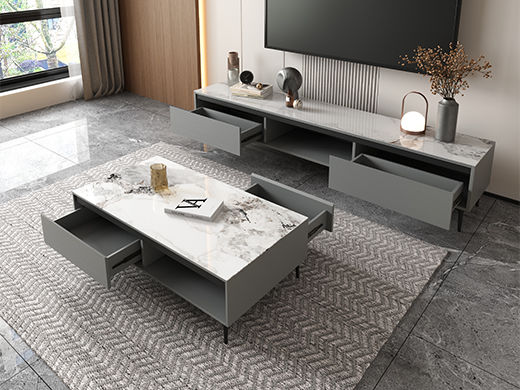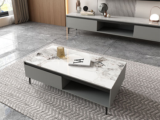 【套餐专享价】每屋优享系列 现代简约 烤漆柜体+亮光雪山石 岩板台面 0.8米组合茶几¥1631