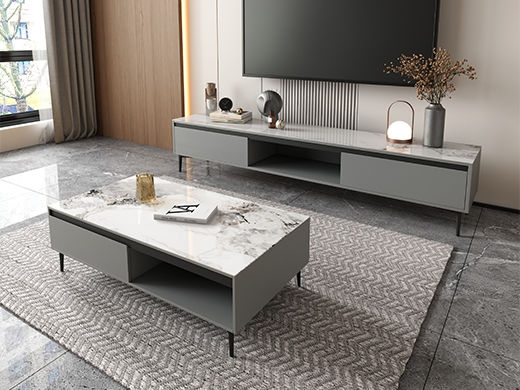 【套餐专享价】每屋优享系列 现代简约 碳素钢脚架+岩板 香奈儿 0.8米组合茶几¥1631
