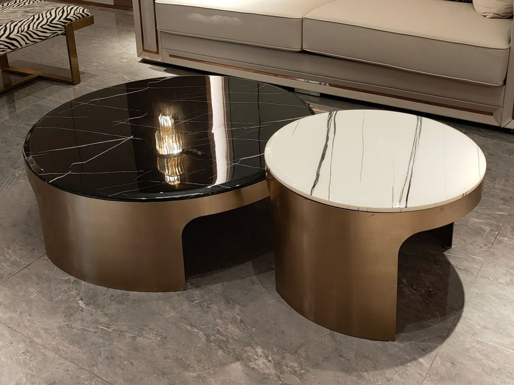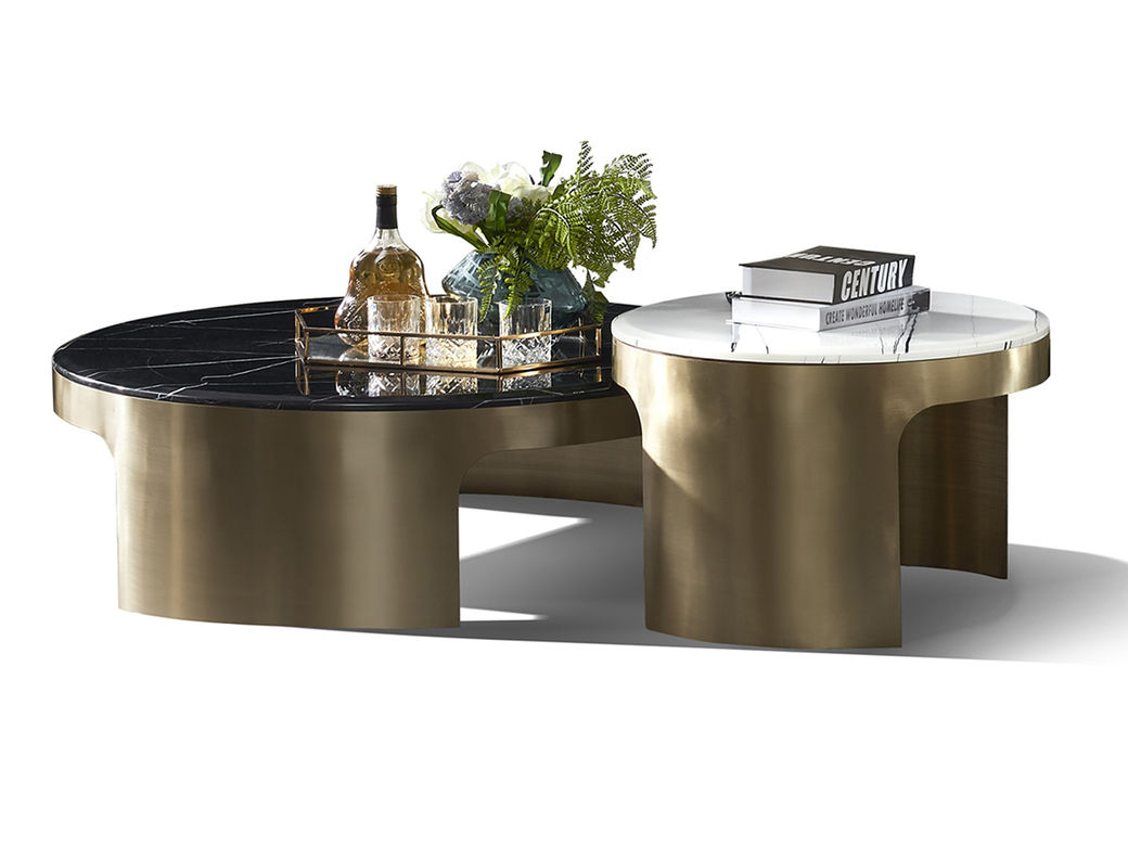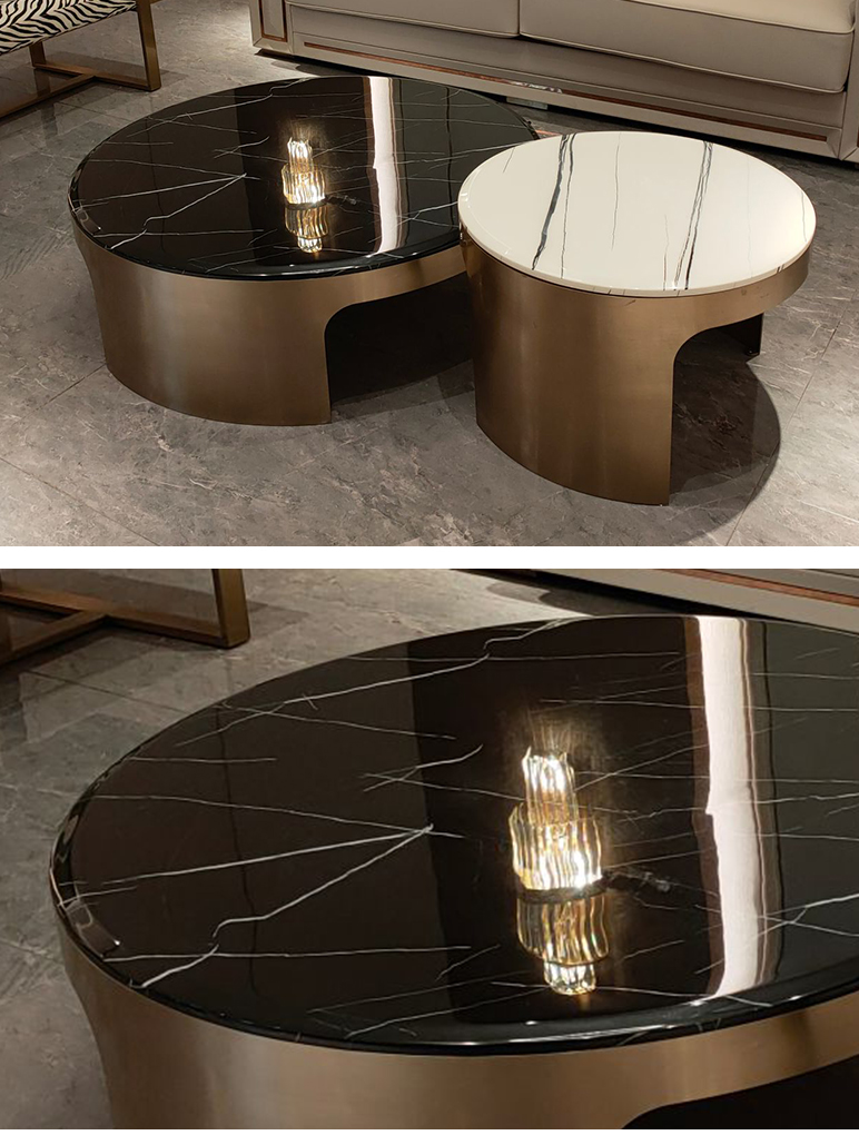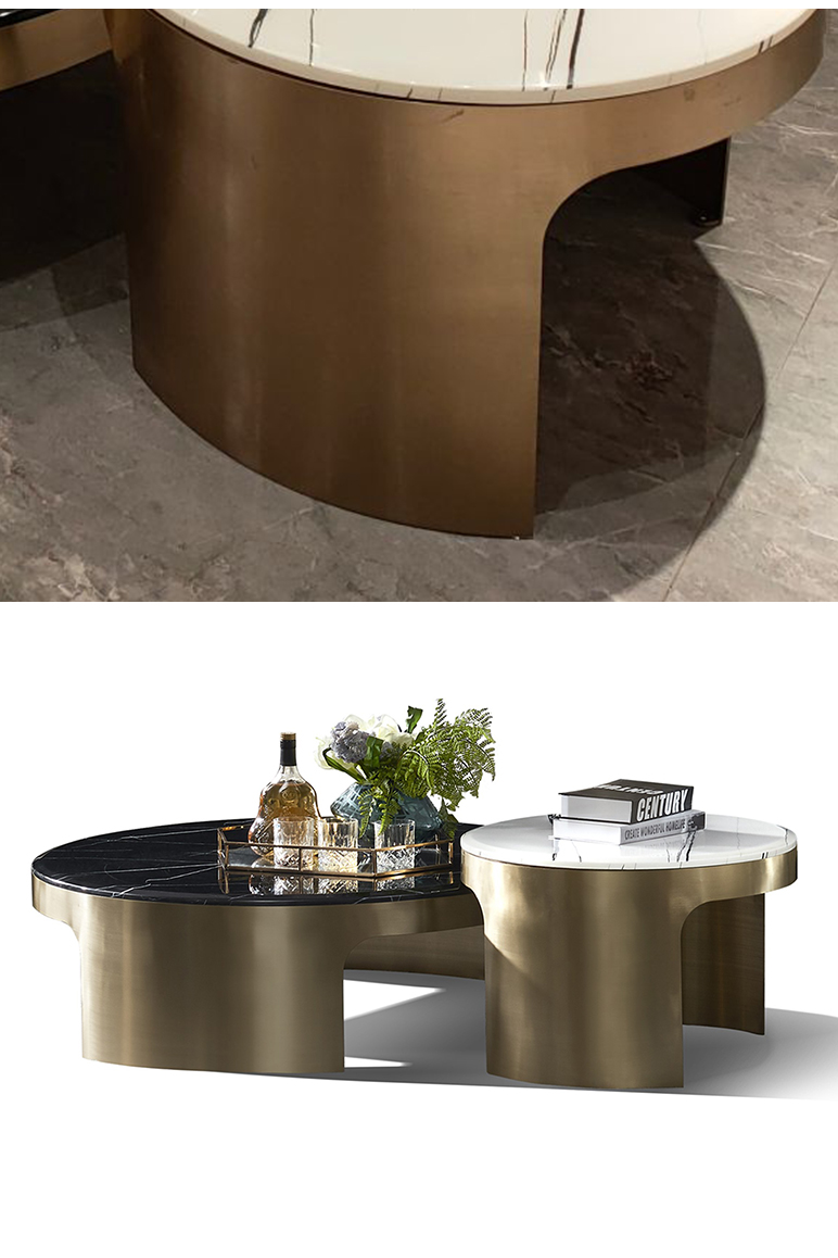 拉斐尔 轻奢 电镀不锈钢五金+天然大理石 1米组合茶几
