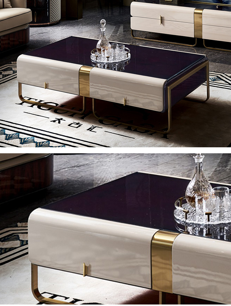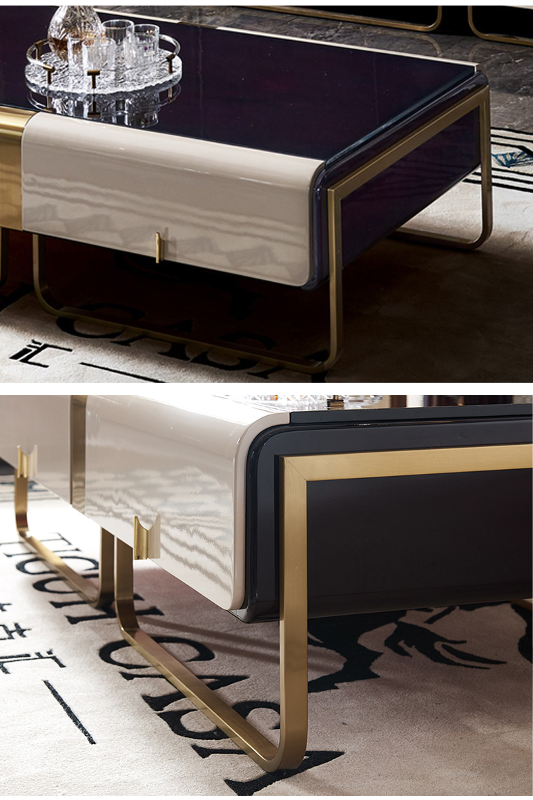 拉斐尔 轻奢 多层实木板+大理石+电镀不锈钢五金+烤漆 1.2米茶几¥4758