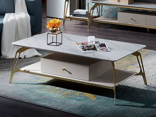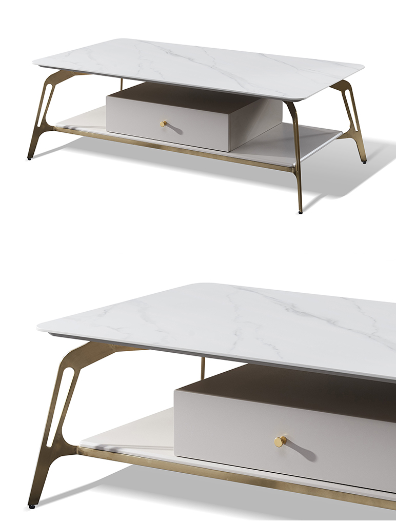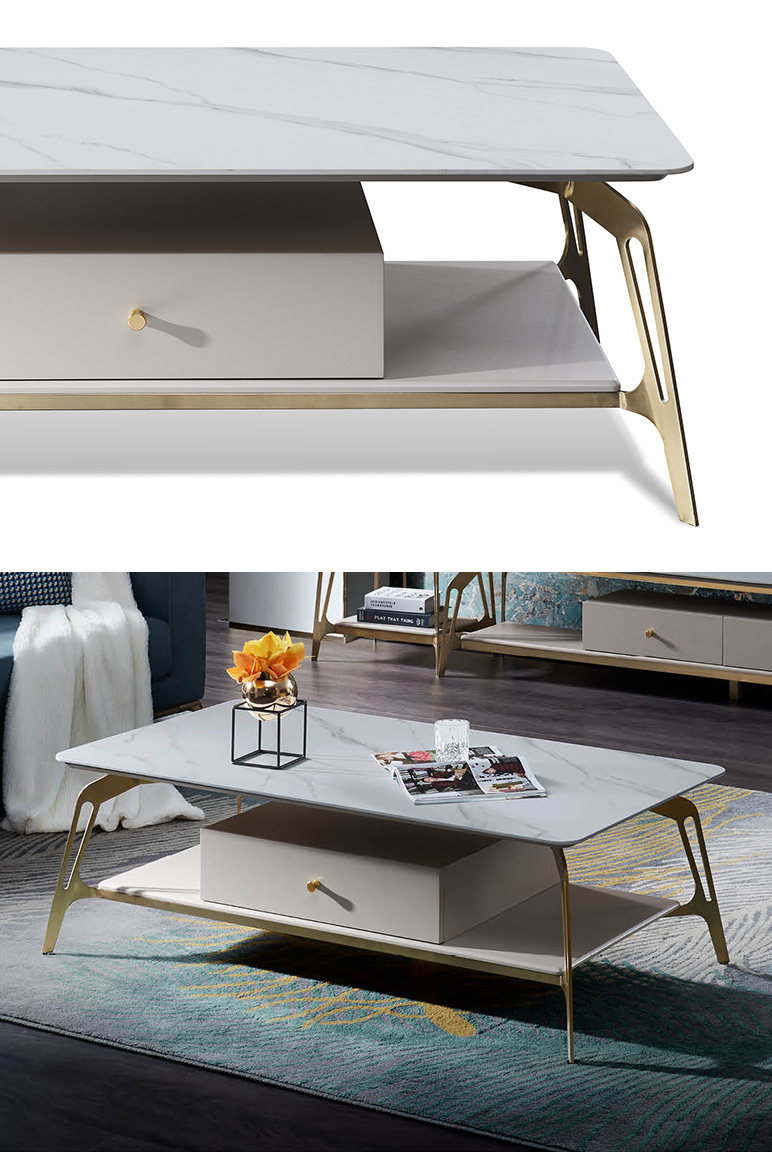 拉斐尔 轻奢 多层实木板+烤漆+电镀不锈钢五金+天然大理石+岩板+静音导轨 1.3米组合茶几¥5415