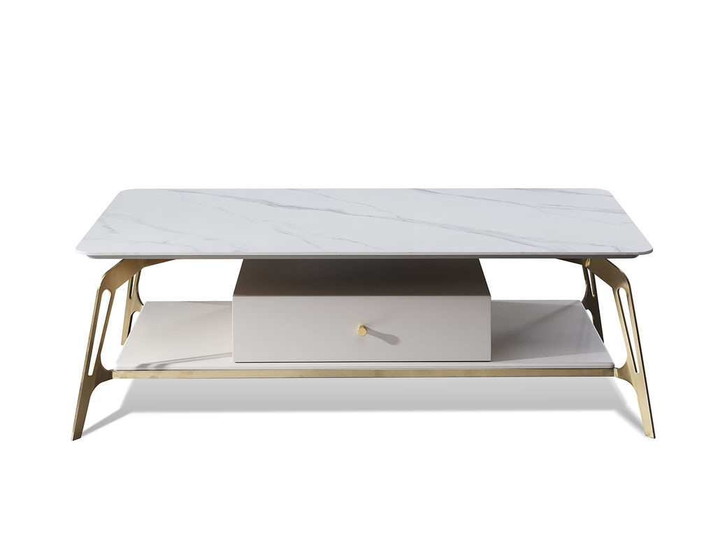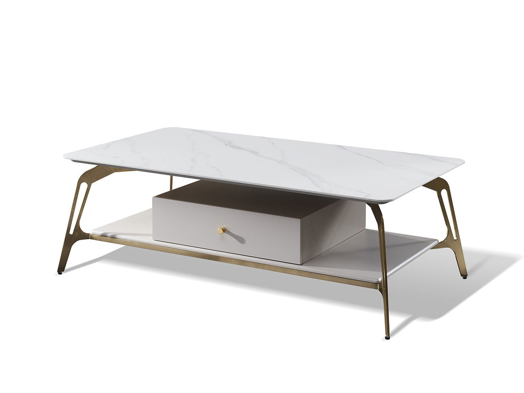 拉斐尔 轻奢 多层实木板+大理石+电镀不锈钢五金+烤漆 1.2米茶几