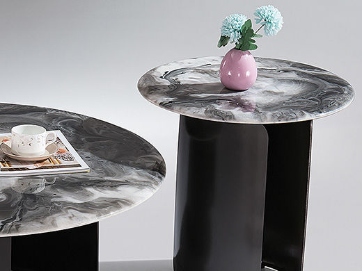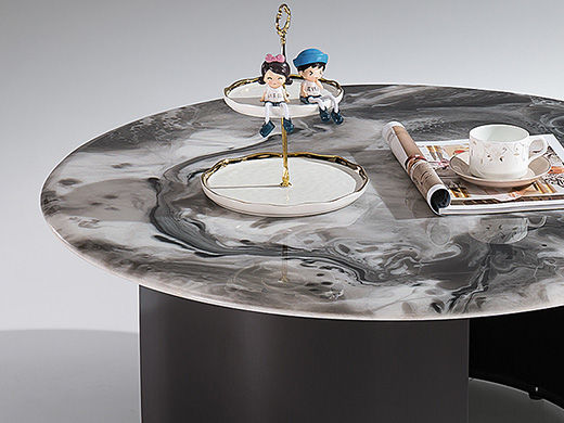 小红书系列 现代简约 桌面:灰色水纹玻璃脚架:大理石 0.9米圆茶几