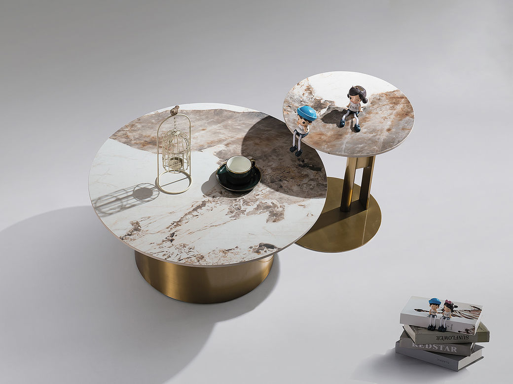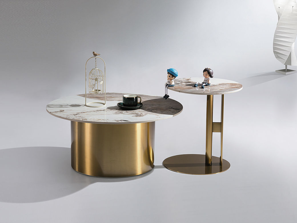 小红书系列 现代简约 桌面:岩板+底板脚架:不锈钢钛金 0.8米组合茶几