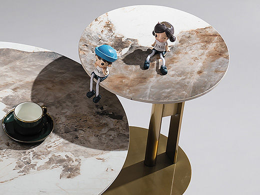 小红书系列 现代简约 桌面:9mm岩板3D打印-灰网脚架:钛金底盘+水晶中柱 0.45米边几