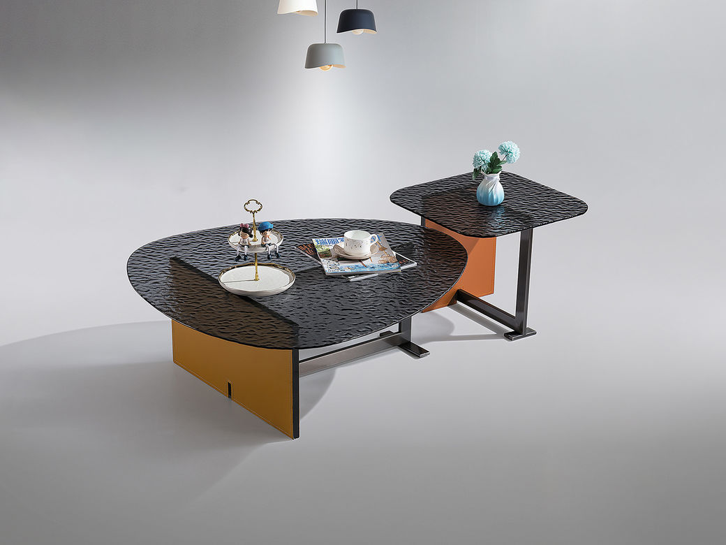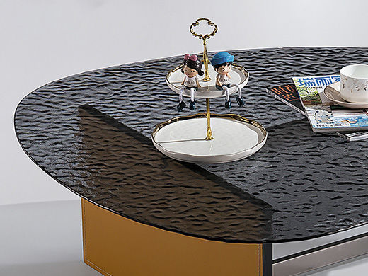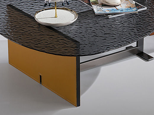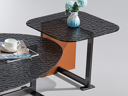 小红书系列 现代简约 桌面:钢化水纹波玻璃脚架:不锈钢黑钛+马鞍皮 1米组合茶几