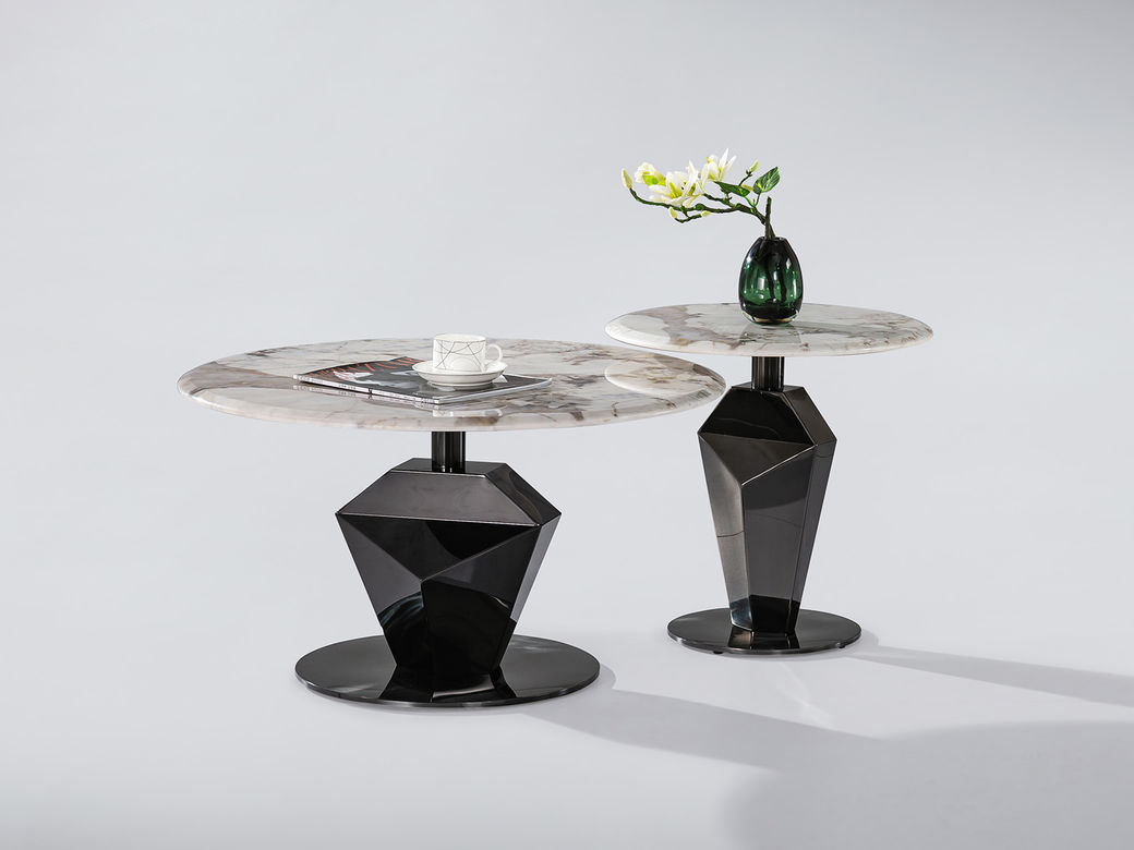 小红书系列 现代简约 桌面:9mm岩板3D打印-灰网脚架:钛金底盘+水晶中柱 0.45米边几