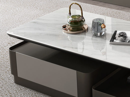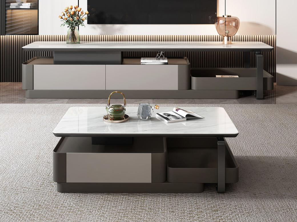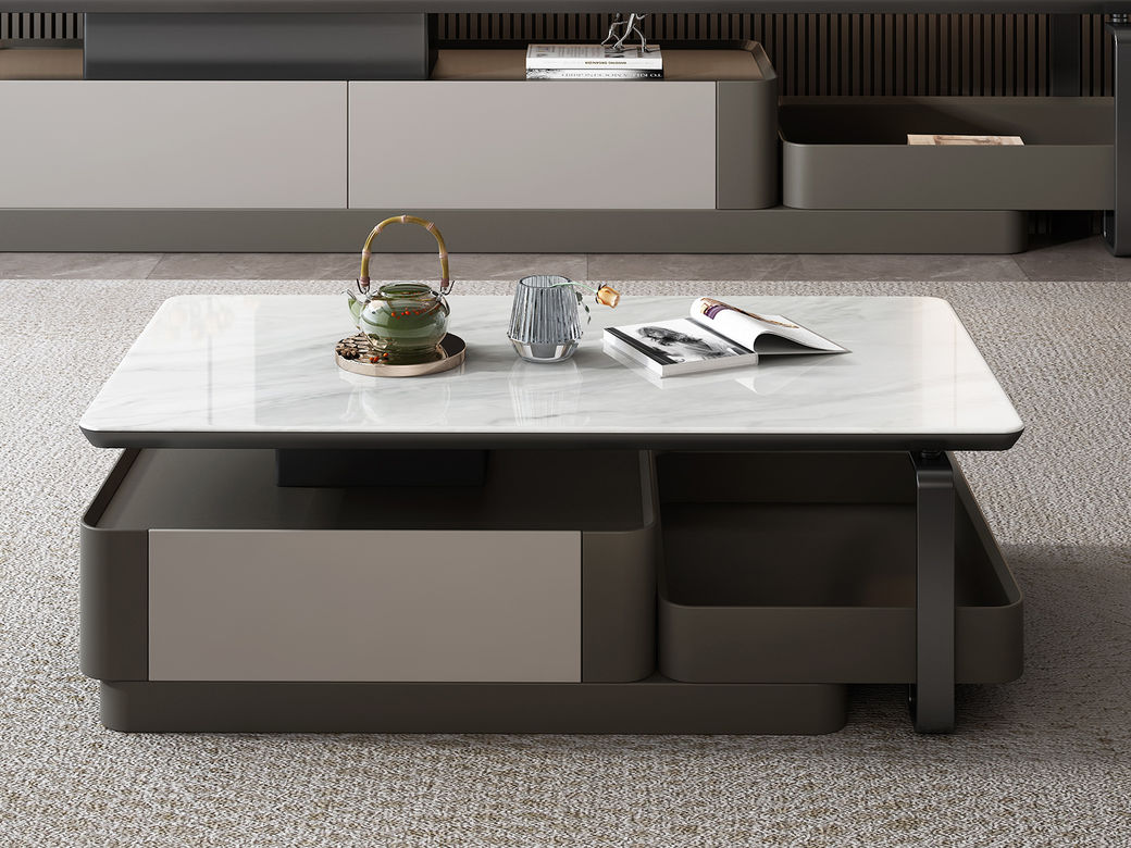 逸澜斯 极简 慕丝白(白龙玉)微晶石+太空灰 环保高密度板+实木+钛金脚 1.3米茶几