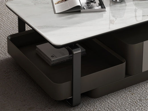 逸澜斯 极简 深色金属漆+灰色金属漆+浪淘沙微晶石+环保高密度板+实木+钛金脚 1.3米茶几