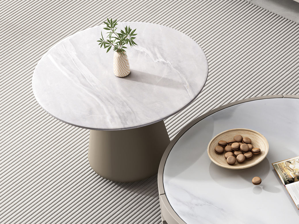 逸澜斯 极简 慕丝白(白龙玉)微晶石+太空灰 环保高密度板+实木+钛金脚 1.3米茶几