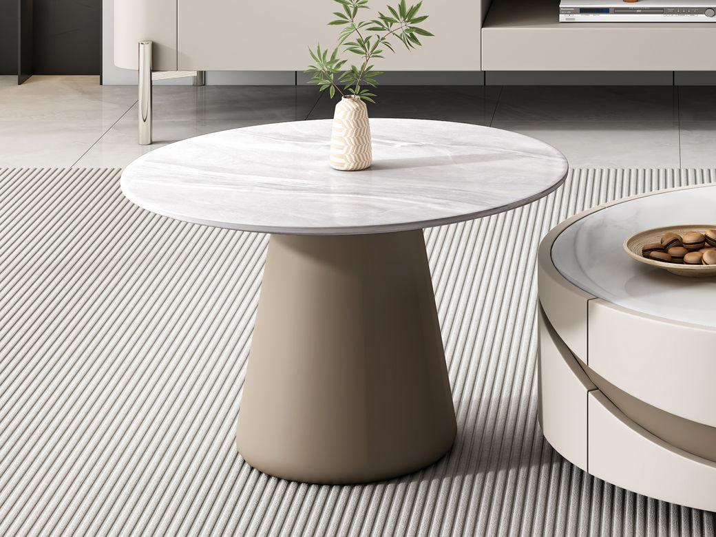 逸澜斯 极简 宾丽白亮光岩板+环保高密度板+实木 1.3米茶几¥4096