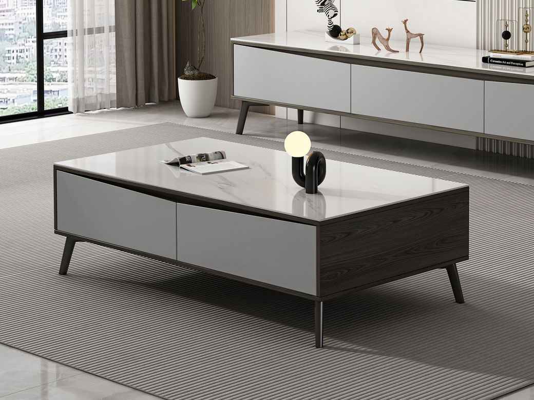 【套餐专享价】每屋优享系列 现代简约 岩板+密度板+碳素 钢五金脚 1.25米茶几¥1631